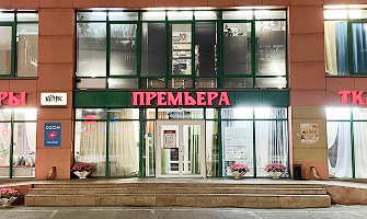 Заходите в двери под большой красной вывеской «Премьера», идите направо через зал портьер. Поднимайтесь по лестнице на второй этаж. Мы находимся в середине.